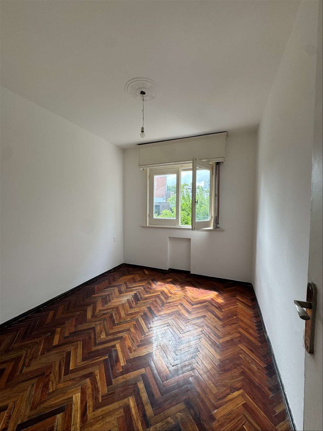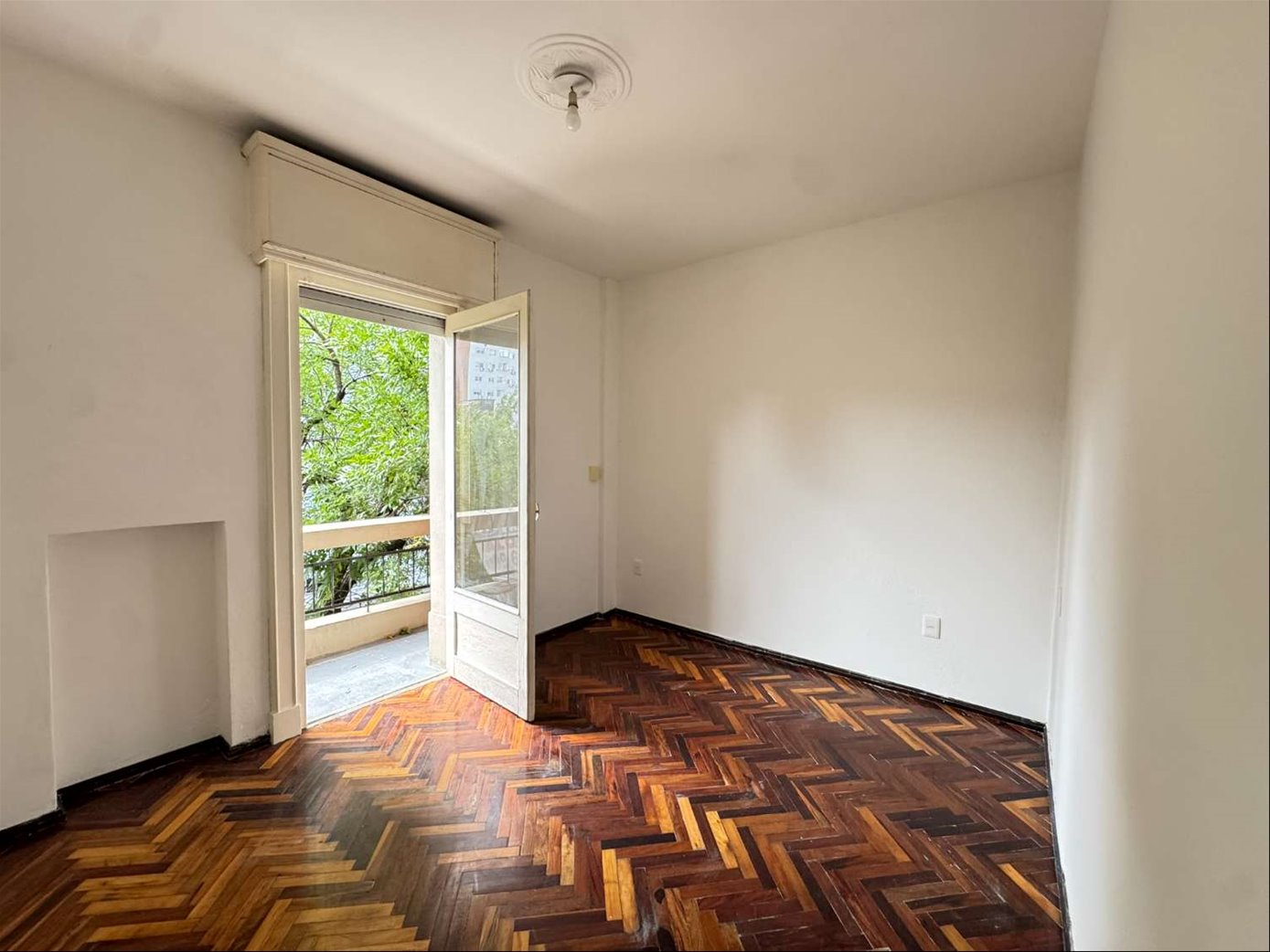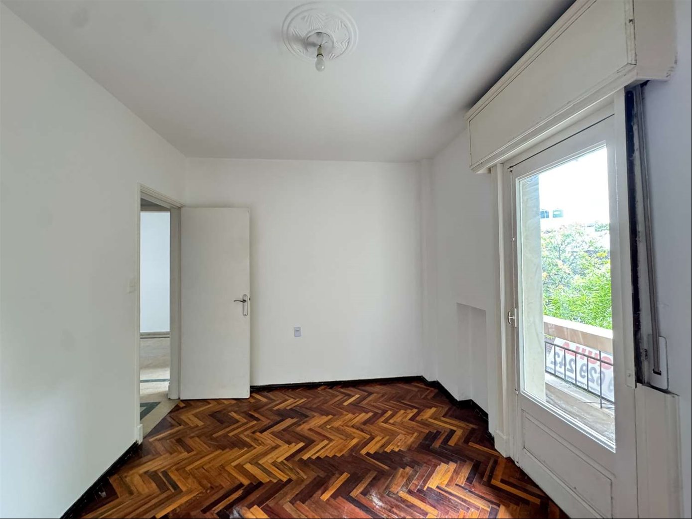 Living comedor amplio, 2 dormitorios enormes con pisos de parquet, ambos al frente, uno a una terraza.