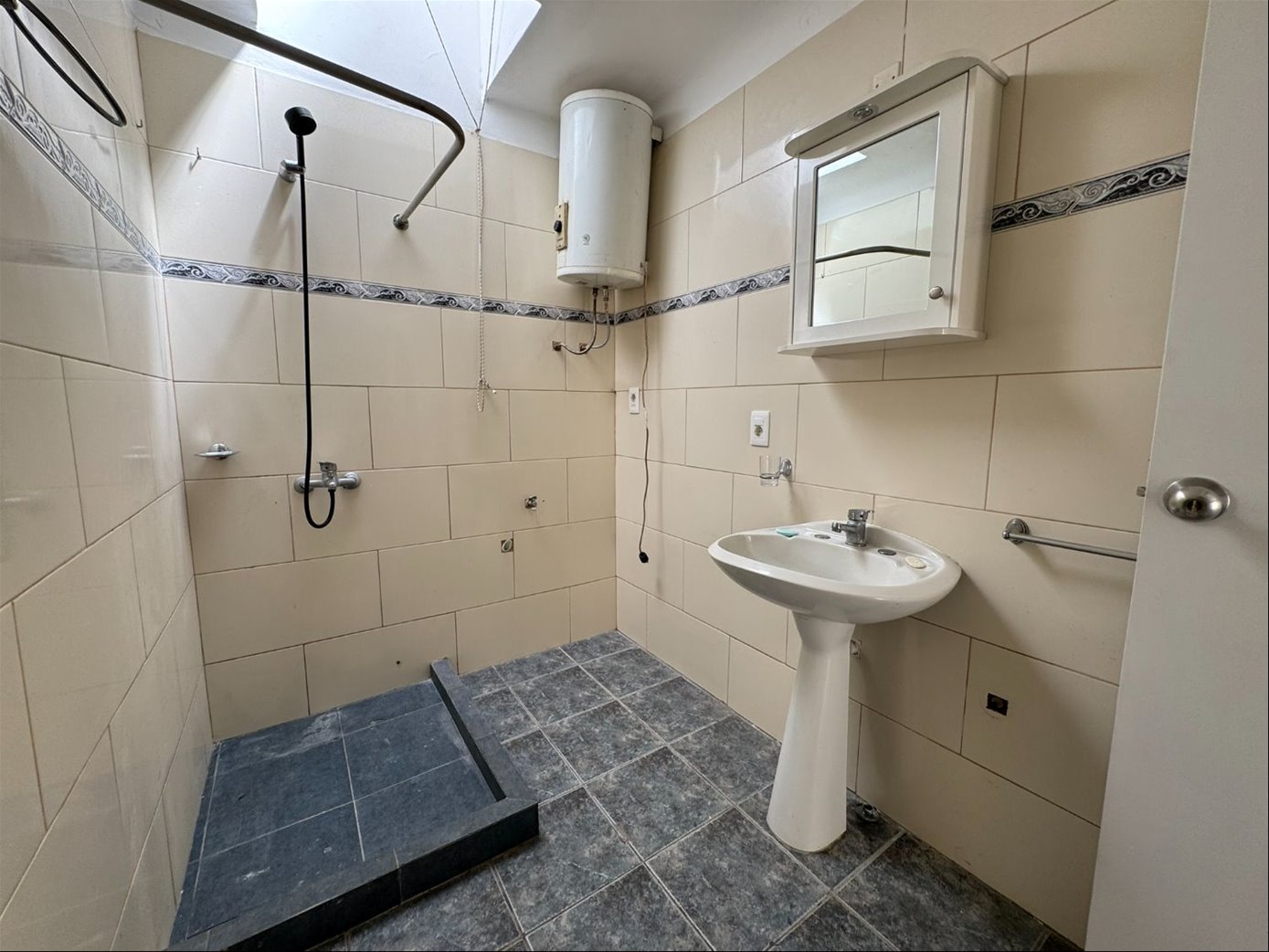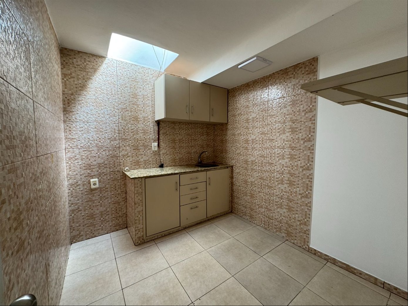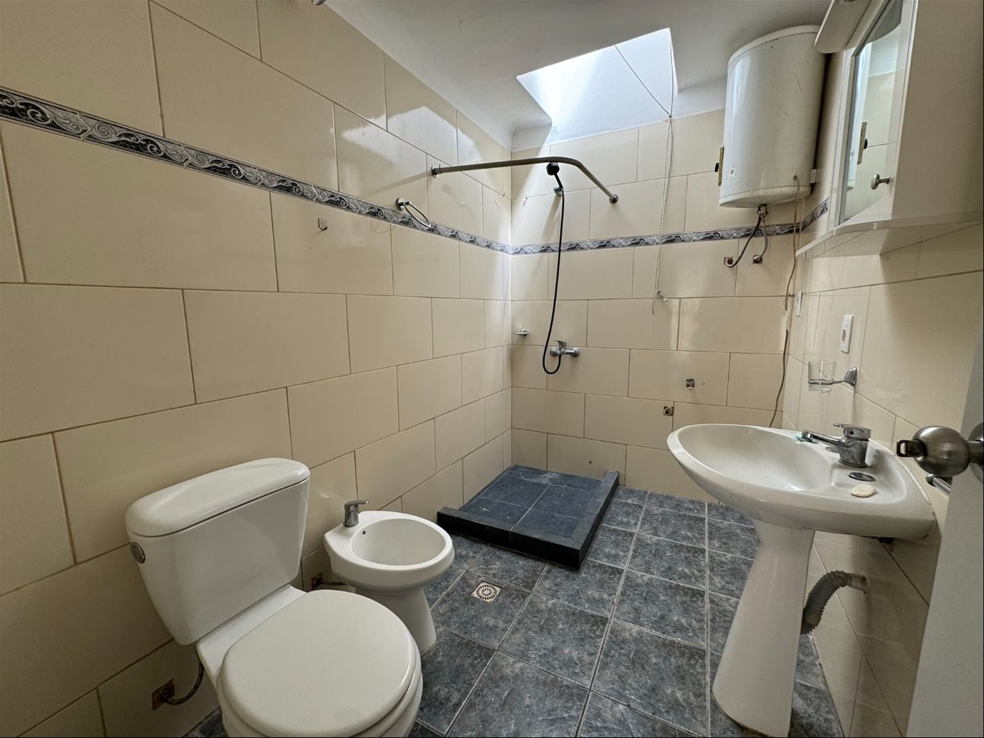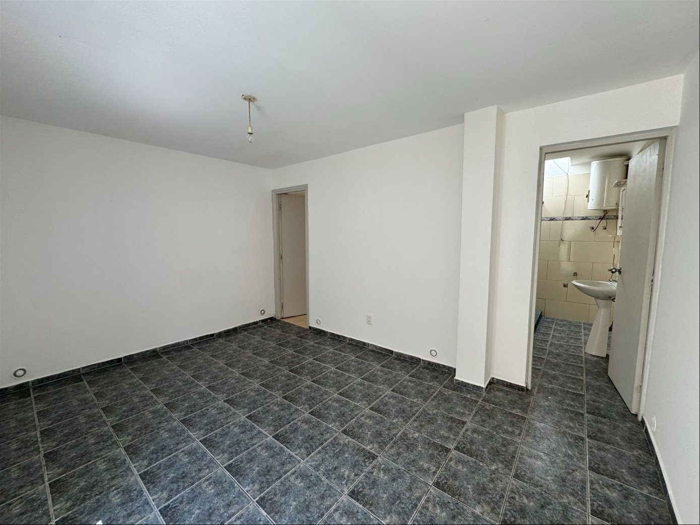 Living comedor con ventanal al patio. Cocina definida y baño grande completo.
