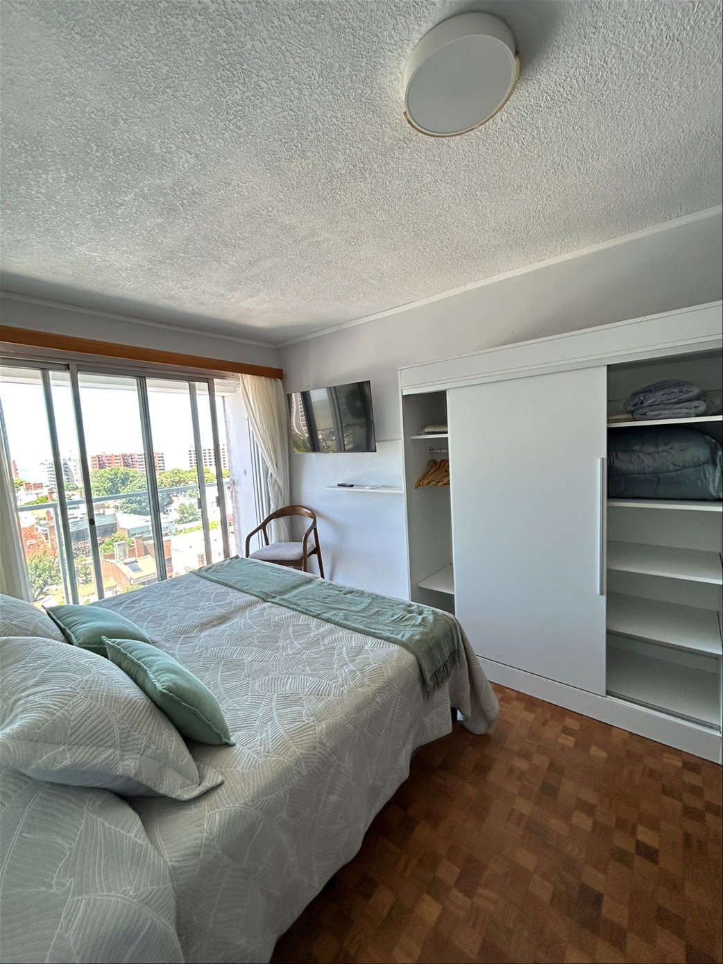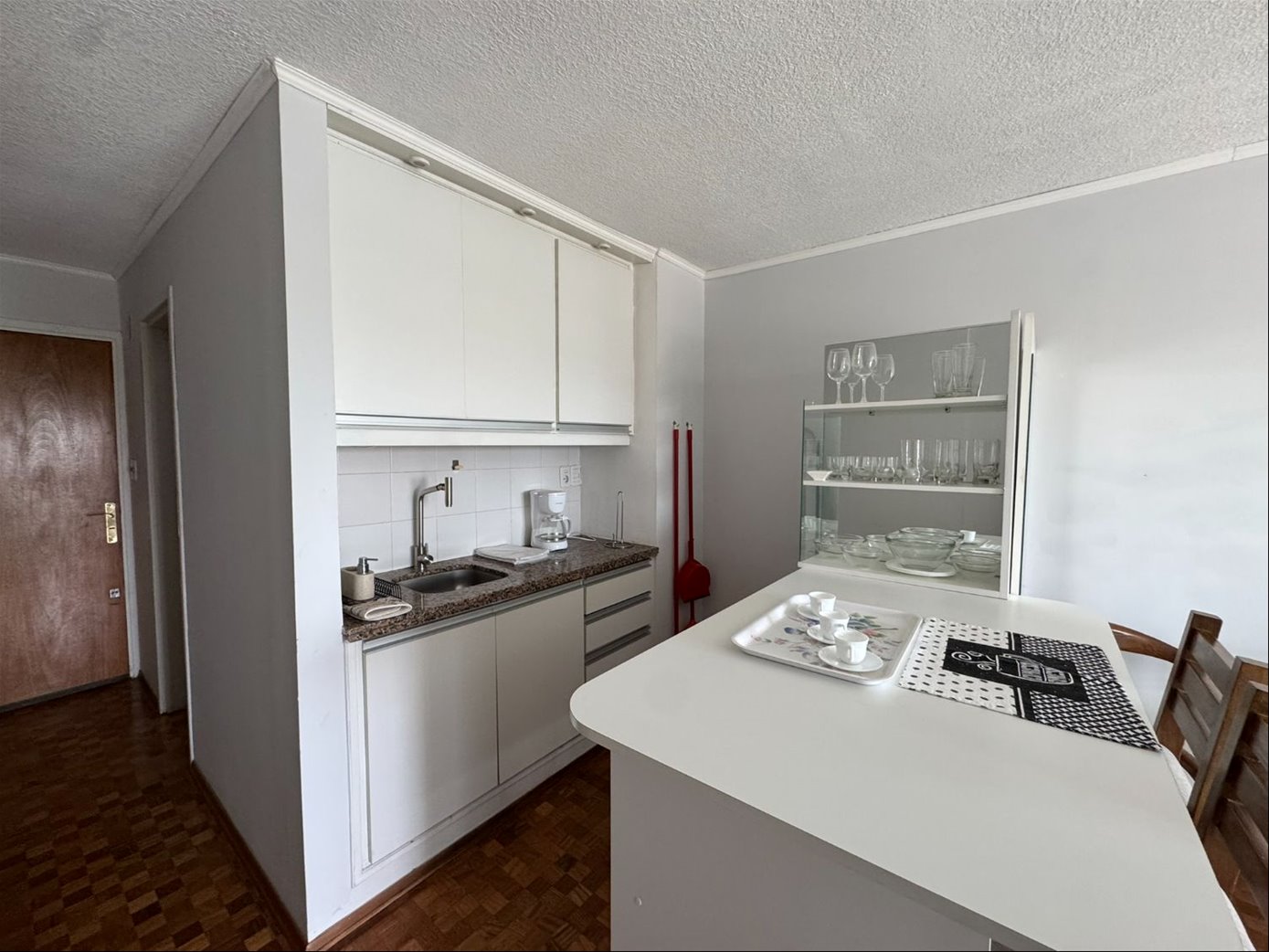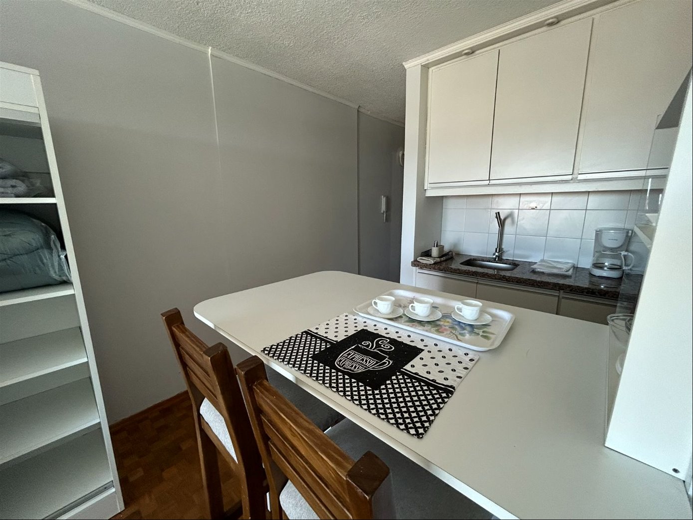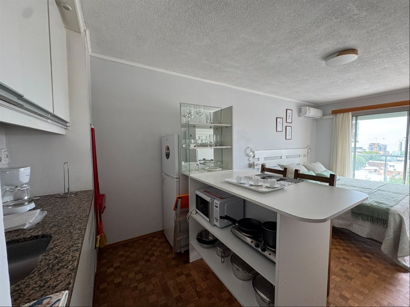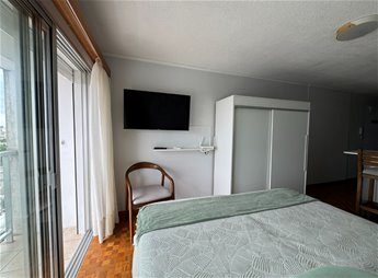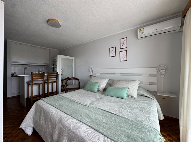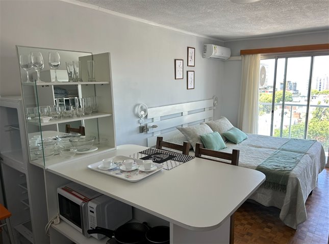 Se entrega completamente equipado con muebles, cama, placard , televisión, barra desayunadora con placares.