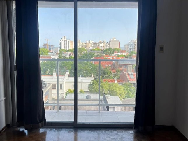 Ambiente amplio con pisos de parquet y terraza con vista super despejada.