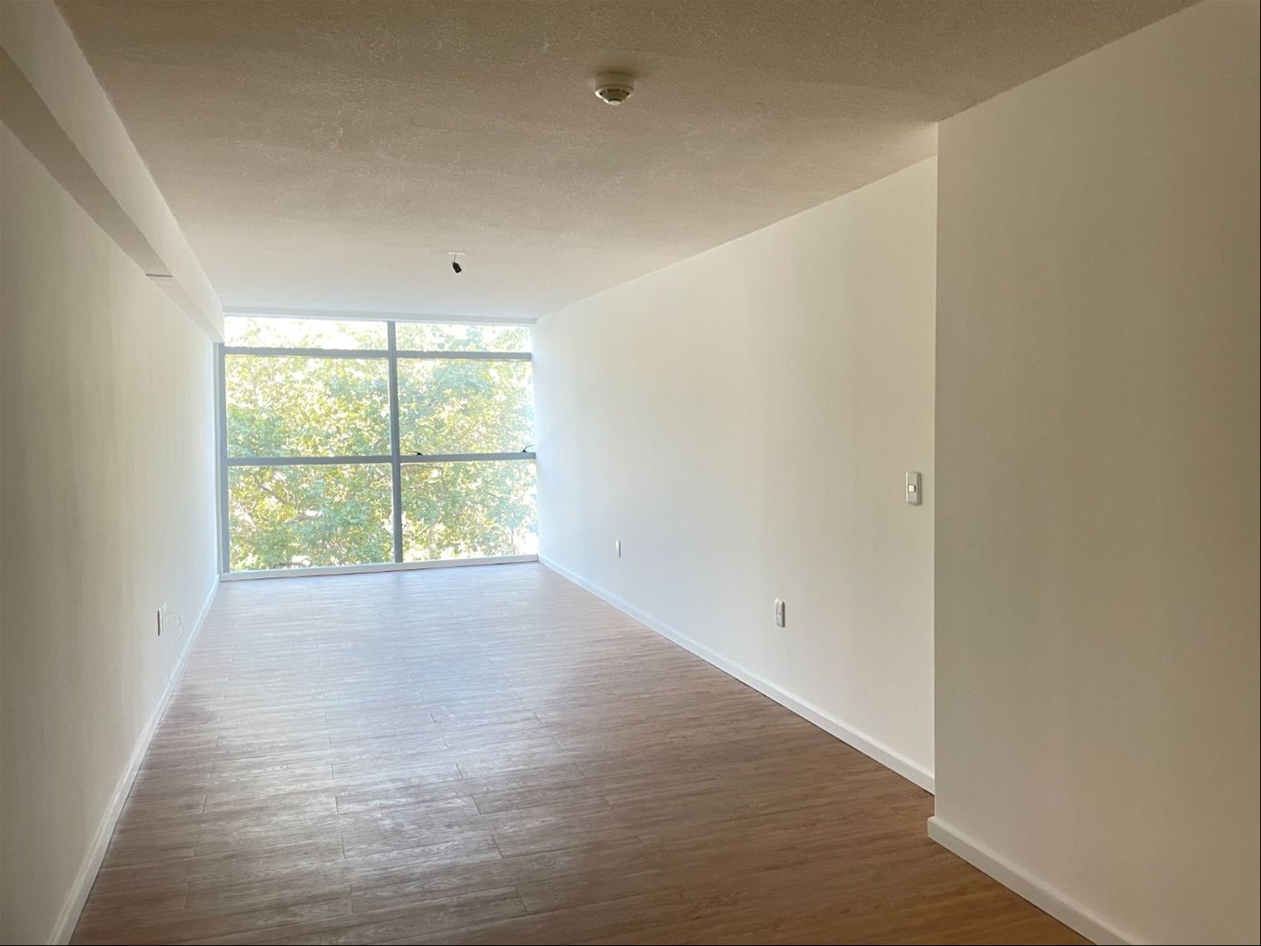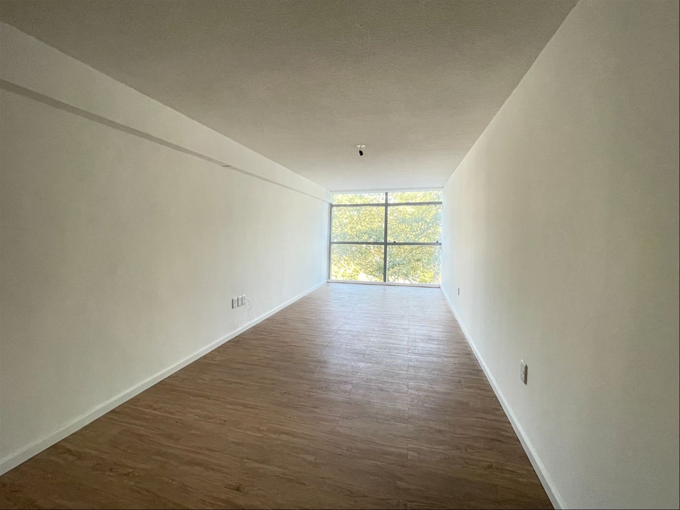 Ambiente amplio de 37m2 reales, con vista y frente a la plaza Cagancha, grandes ventanales a la plaza.